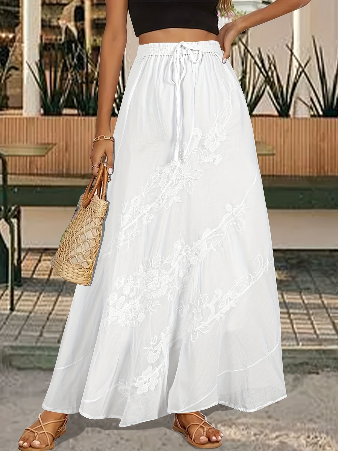 Solid Drawstring Waist Skirt, Elegant Beach Wear Swing Skirt For Spring & Summer, Women's Clothing