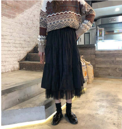 New Women's Mesh Loose All-Match A-line Long Skirt