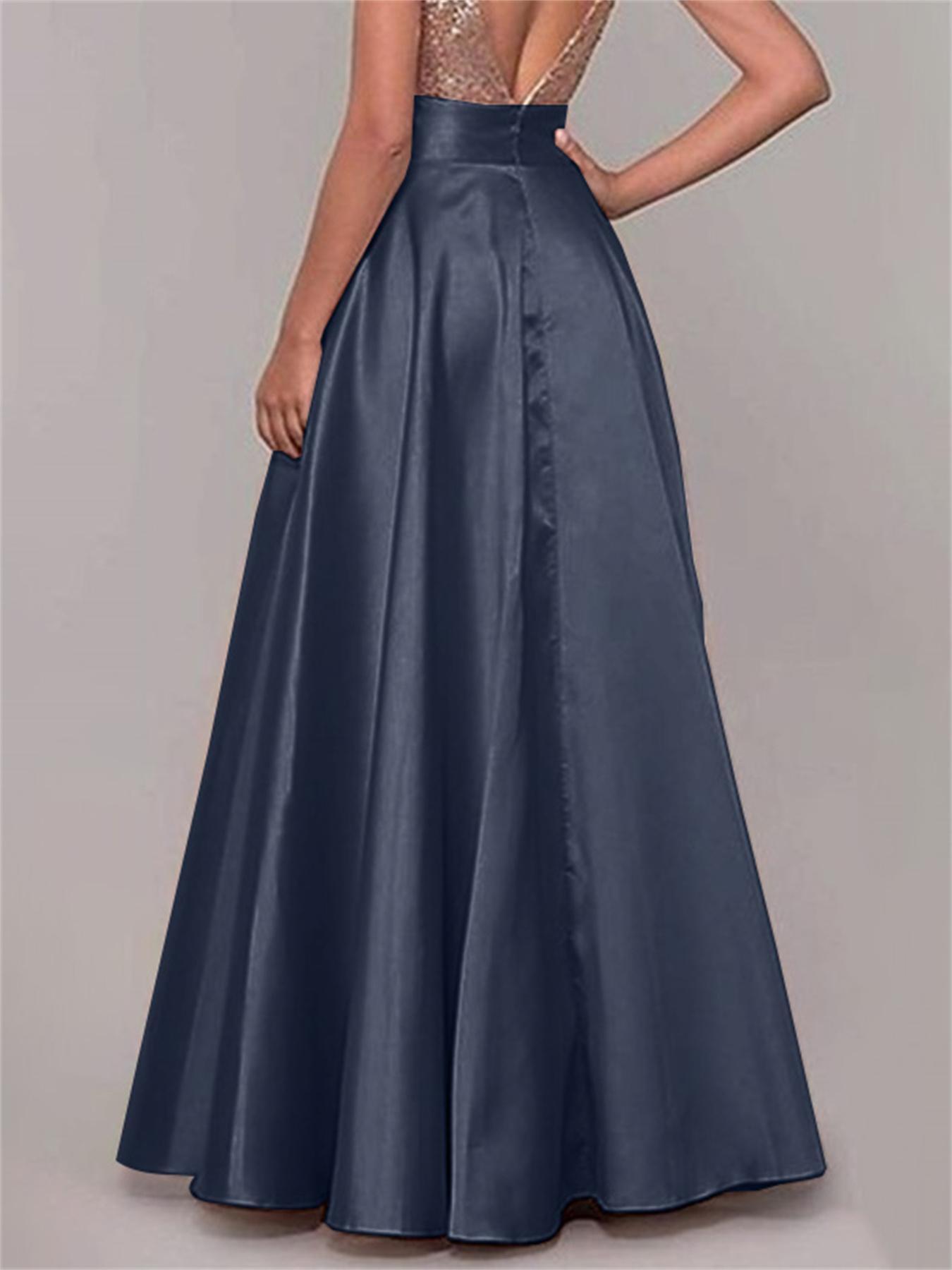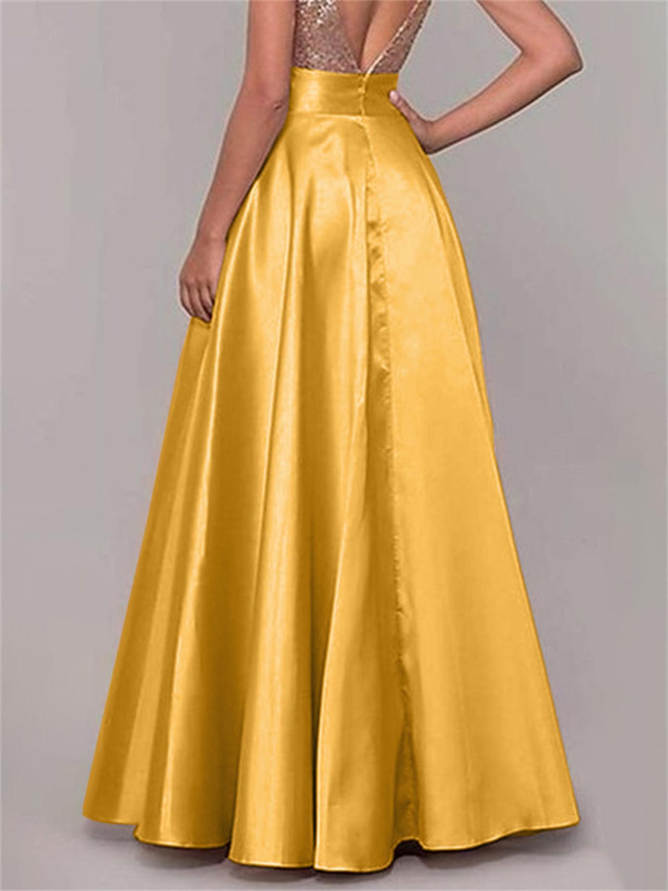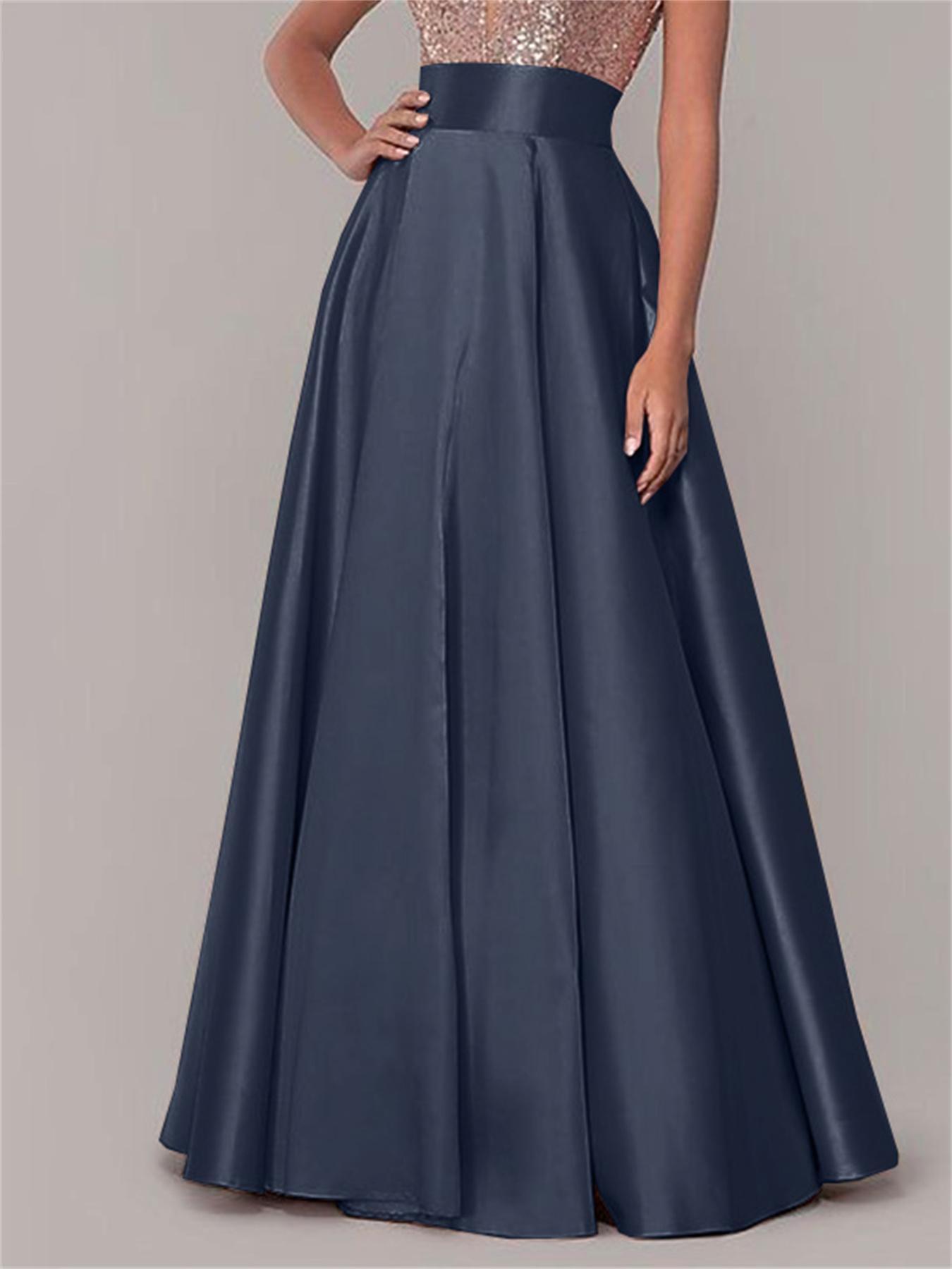 Elegant Plus Size Satin A-Line Skirt - High Waist, Pleated Maxi Dress For Prom & Evening Events, Machine Washable Dresses For Women Elegant Classy Dresses For Women Plus Size